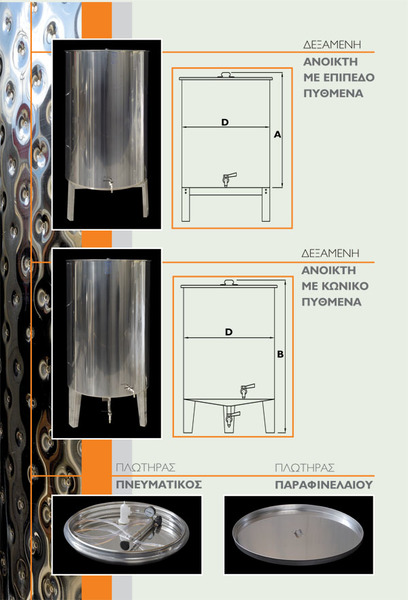 Ανοξείδωτο δοχείο υψηλής ποιότητας και ελληνικής κατασκευής με κώνικο πυθμένα. Το δοχείο αυτό είναι κατάλληλο για τρόφιμα όπως λάδι, κρασί, γάλα κλπ. Συγκολλητό με TIG που επιτυγχάνει λείες ενώσεις χωρίς εσοχές ή σχισμές ώστε να μην δημιουργούνται παθογόνες εστίες μικροοργανισμών και να καθαρίζεται εύκολα. Κατασκευασμένο από ανοξείδωτο χάλυβα AISI 304 18/10 που πληρεί τους κανονισμούς υγιεινής της ΕΕ για την αποθήκευση τροφίμων.